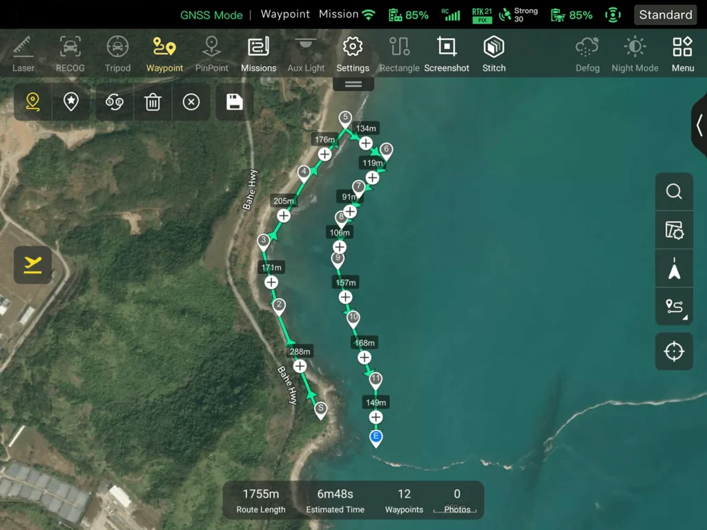 Flugrouten entlang von Wegpunkten erstellen.