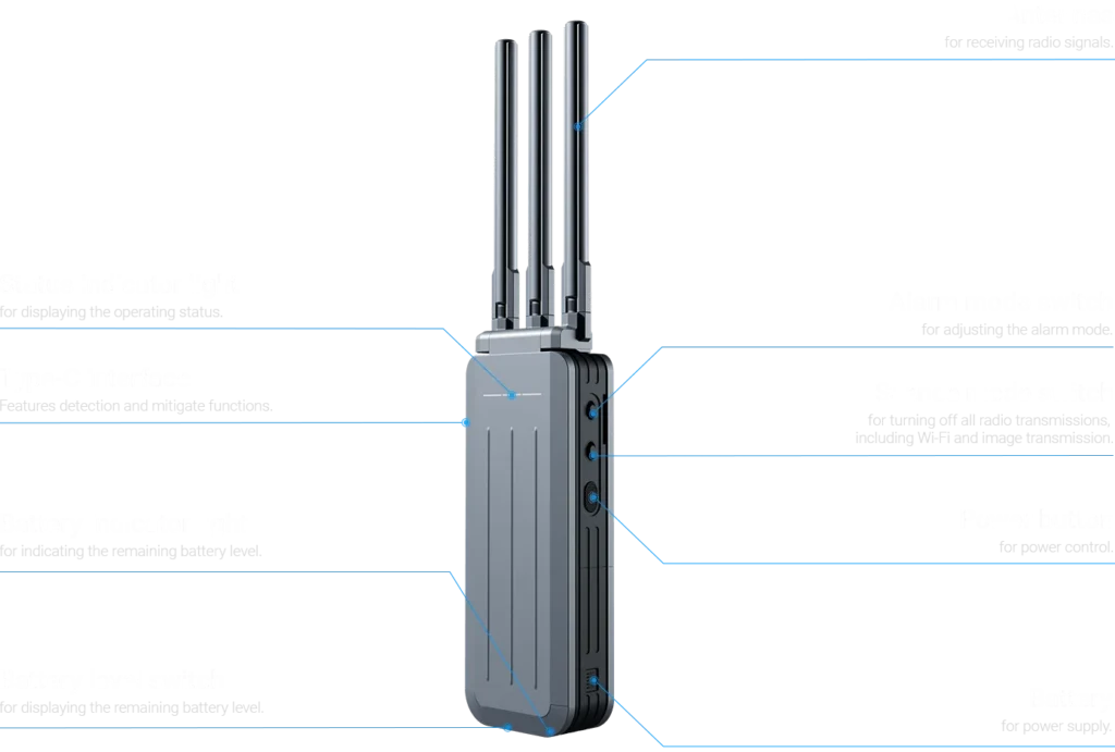 Der Tracer ist ein speziell entwickeltes Gerät zur Detektion und Analyse von Drohnenaktivitäten. Durch das Dekodieren von UAV-Signalen kann er detaillierte Informationen wie Drohnenmarke, Modell, Seriennummer (SN), Standort sowie die Position des Operators präzise erfassen.