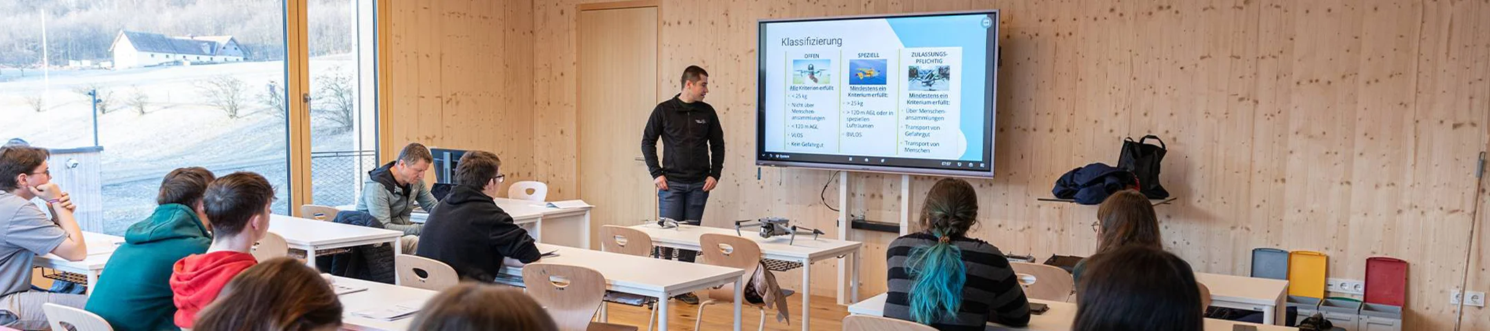 Der Kurs vermittelt die Grundlagen zu Luftraumregeln, Flugverhalten, Sicherheitsbestimmungen und Verantwortung im Betrieb.